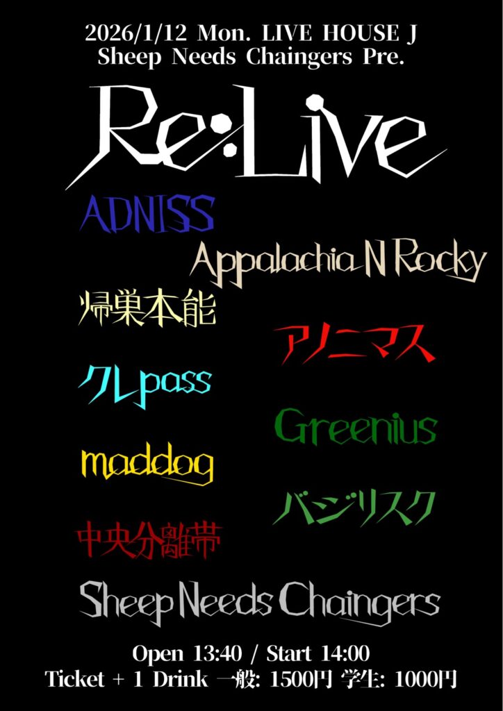 OPEN13:40/START14:00 一般 1200円/学生 700円